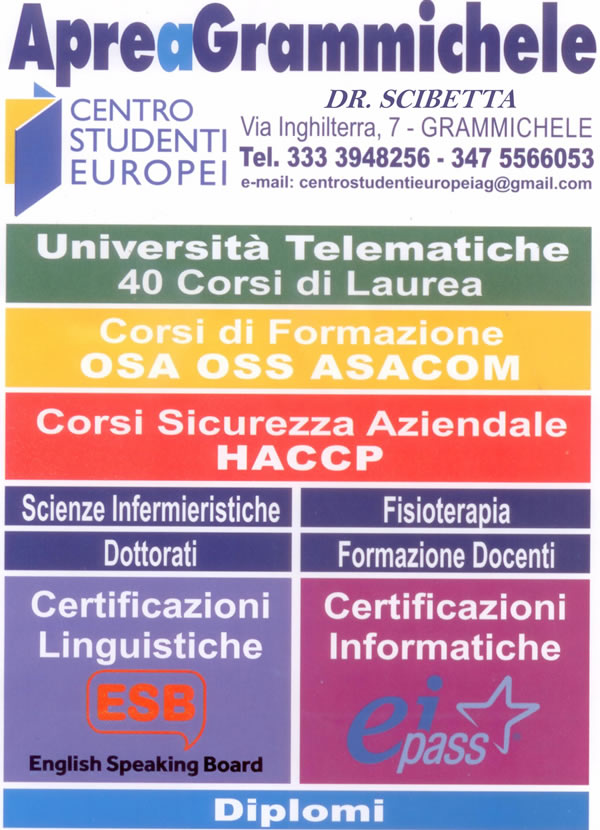 Per te che sei alla ricerca di una giusta preparazione professionale,e della possibilità di inserirti fin da subito nel mondo del lavoro, noi potremmo essere la risposta alle tue esigenze. DR. Vito Scibetta